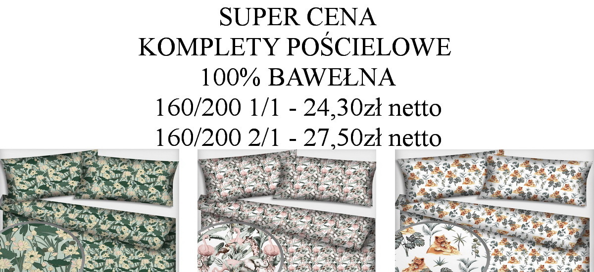 Tkaniny pościelowe to nie jedyny asortyment jaki mamy dla Klientów. Oferujemy także gotową pościel drukowaną i haftowaną, przepiękną pościel adamaszkową, a także zestawy pościelowe wykonane z tkanin marki Itaka, Medical i Noris oraz bogatą konfekcję dziecięcą.